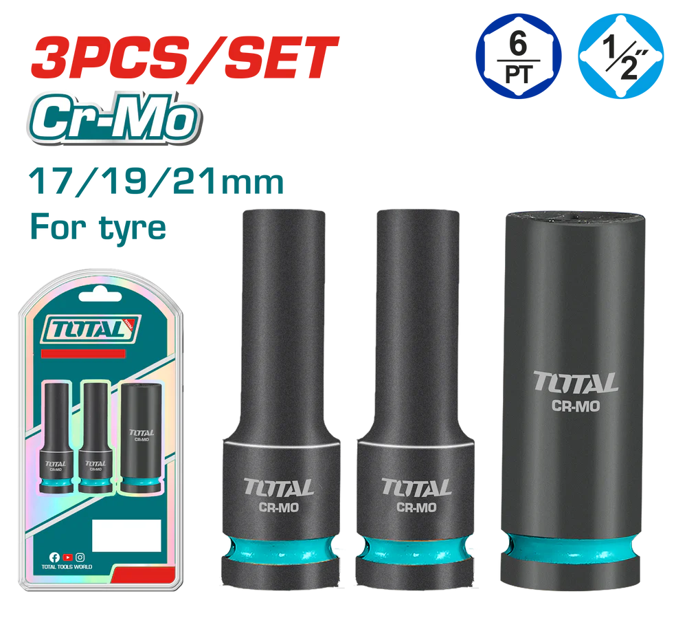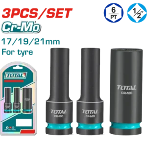 توتال تولز طقم لقم تصادمية طويلة 1/2 بوصة 3 قطع 17-19-21 مم – THKISD12042L