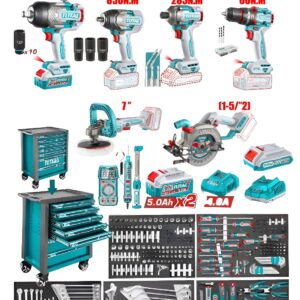 1350NM Cordless impact wrench(TIWLI201351): Brushless motor Voltage: 20V Square drive: 3/4″ No-load speed: 0-900/0-1200/0-1800rpm Impact rate: 0-1800/0-2000/0-2200bpm Fastening torque: 1350Nm Nut-Busting torque: 1900Nm Integrated LED work light Include: 2 Pcs 5.0Ah battery pack(TFBLI20531) 1 Pcs 4A charger(TFCLI20411) Charge volts:220-240V~50/60Hz