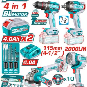 Cordless 4 pcs combo kit tosli241292 كومبو دريل امباكت وصاروخ كشاف