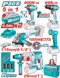 TOTAL Cordless 5 Pcs Industrial Combo Kit 20V Brushless TCKLI20592